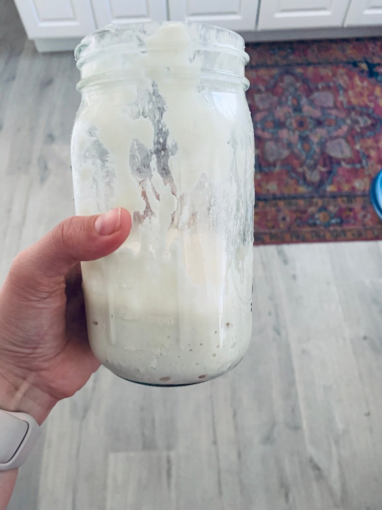 This is the 7 day process of creating your pet sourdough starter. You only have to do this process once in your life, or you can get a starter from a friend (me! I’ll give you some starter!). This was the one part of my ego that kicked in… I heard I would have this my whole life so I figured I should be the creator.
