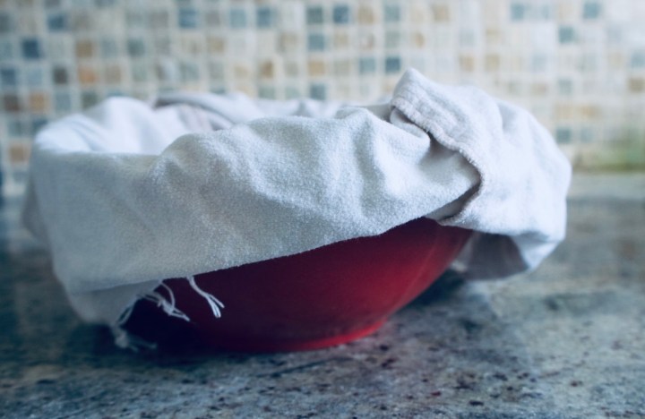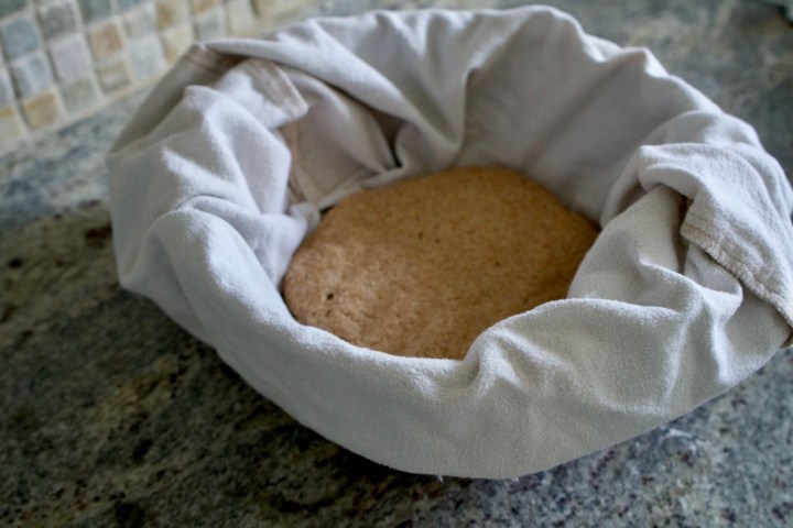 I had a bowl ready for ‘proofing’ or rising, it is a mixing bowl with a tea towel covered in flour, gently place your dough into this bowl all seams facing up. Lightly flour the top of your bread and put it in the fridge overnight.