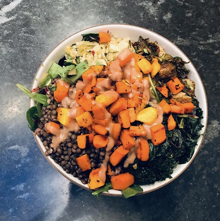 The above ingredients serve a great base with complete protein, probiotics, enzymes, fats and fiber(LOL) my body feels optimal at. You’ll notice from my photos that depending on the season I throw on different types of veggies, as we approach summer I’ll be adding some black beans, fresh sweet corn, cilantro, lime and red onion.